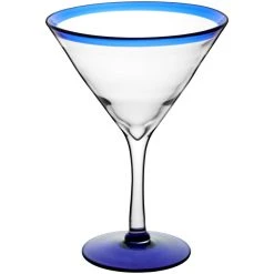 Acopa Tropic 24 Oz. Martini Glass With Blue Rim And Base – 12/Case